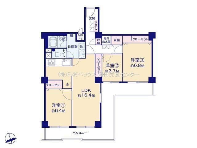 4F LDK 16.4帖 、4F 洋 6.4帖 、4F 洋 3.7帖 、4F 洋 6.8帖