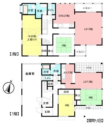 ロフトなど収納豊富、ルーフテラス約8帖つき。