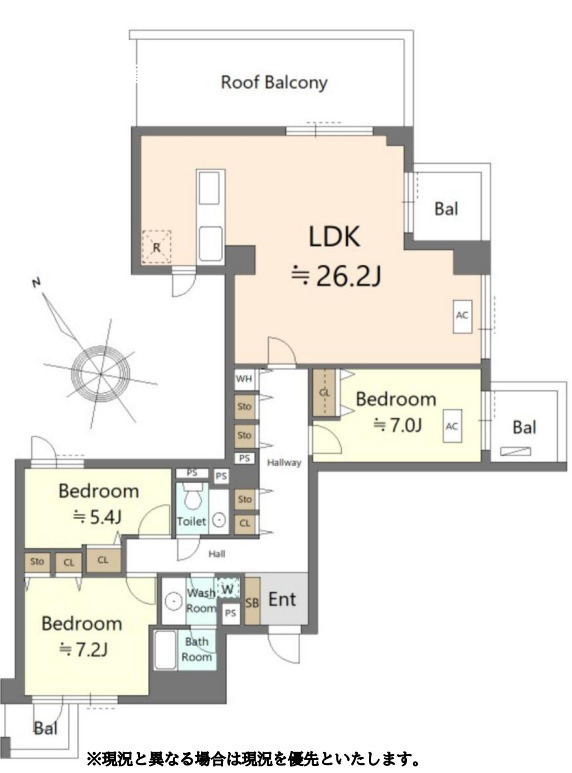 3F LDK 26.2帖 、3F 洋 7.2帖 、3F 洋 7.0帖 、3F LDK 5.4帖