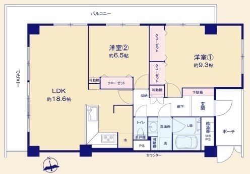 北西角部屋19.48㎡の広々L字バルコニー